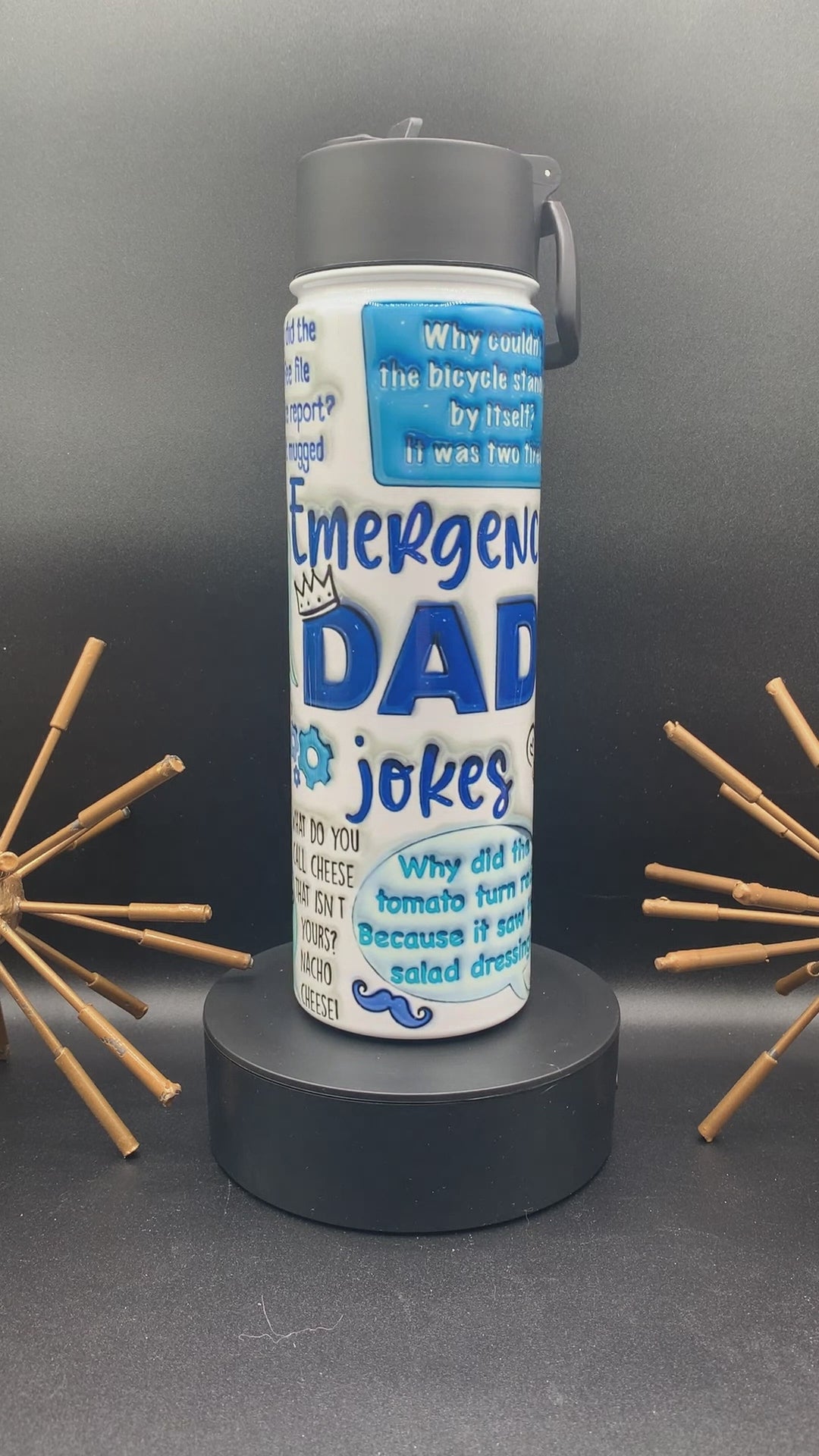 Dad is never at a loss for jokes. The cornier the better. Well this 20 oz water bottle has a few more for dad to add to his collection. And they are corny!