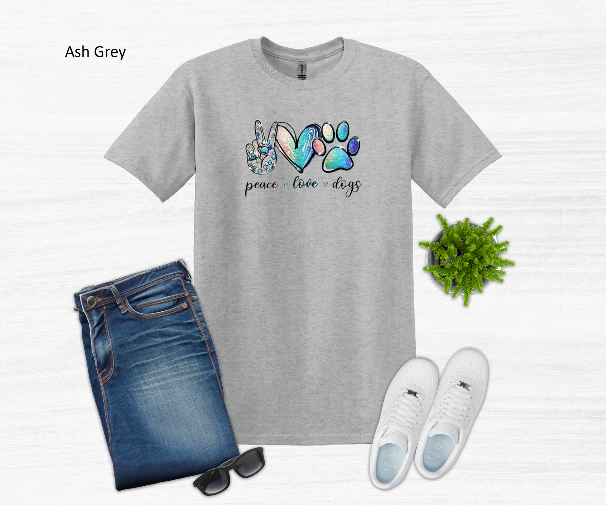 Our furry companions are the ultimate VIPs in our lives! Snag this Peace, Love, Dogs shirt and flaunt that pup love to the universe. Available in Ash Grey or Teal.