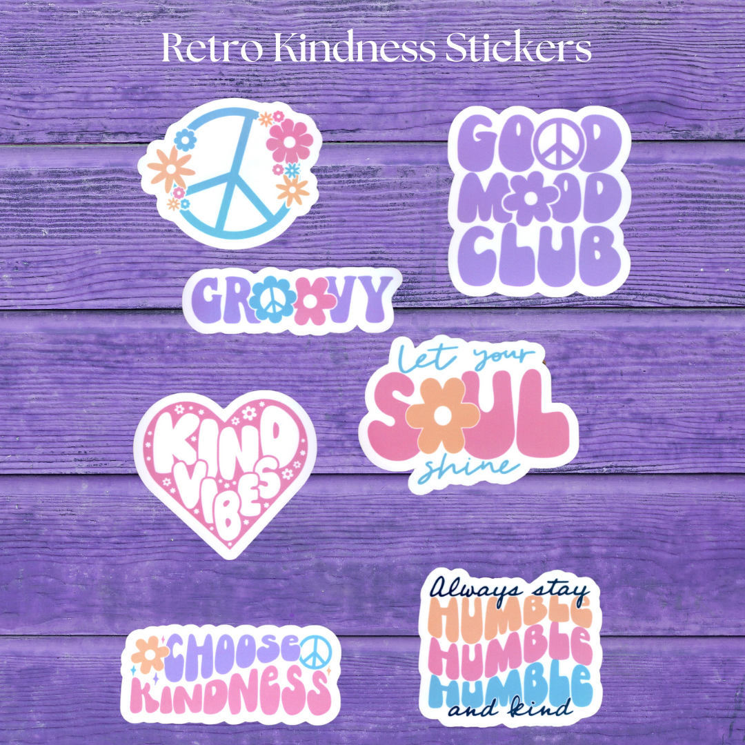Retro Kindness Stickers, Stay Humble, Groovy, Choose Kindness