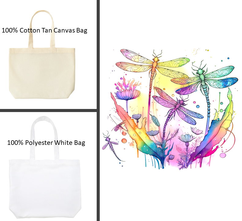 Choose from our 13.5" x 13.5" x 3.5" 100% cotton canvas tan tote bag or 12" x 13" x 4" 100% polyester white tote bag. Great accessory to your tumbler or t-shirt. Also watch for other matching accessories during checkout.
